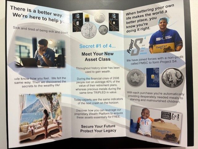 The business is part affiliate marketing, part precious metals network and the product is Silver bullion (not Graded coins). In some cases even gold bars.